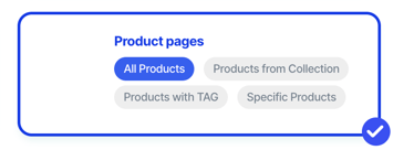 2.1. Select All Products (you can also choose Products with TAG / Products from Collection / Specific Products) to specify which pages you'll add the message to.