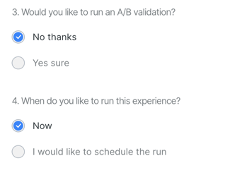 11. Choose if you want to run this experience as an A/B test, or schedule the change for a specific time and date.