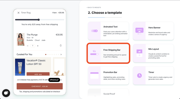 - Select 'Sale Boosters', and then select 'Free Shipping Bar'.