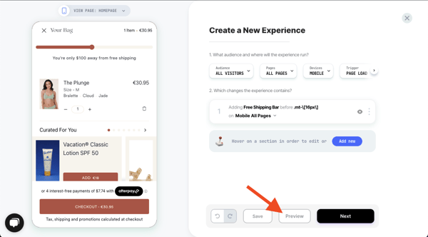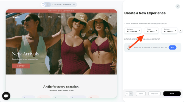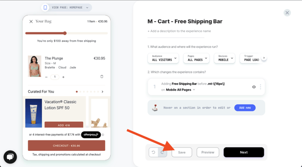You’re all set! Click on 'next' to set up the experience. Choose if you want to run this experience as an A/B test, or schedule the change for a specific time and date.