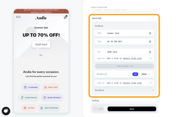 6. In the "Quick Edit" section, add the content you want for each slide, such as text, high quality images, and links.