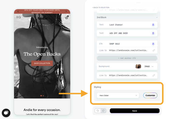 7. Adjust the design. You can either customize manually or select a previously used or saved style.