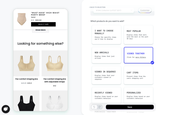 8. In the strategy pane, select "Viewed Together" to dynamically display items most viewed with the current product.