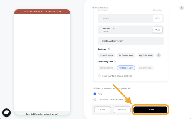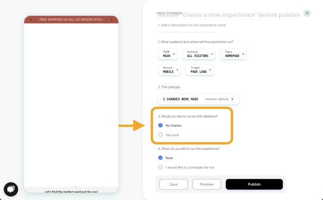 14. Choose if you want to run this experience as an A/B test, or schedule the experience to launch at a specific date and time.
